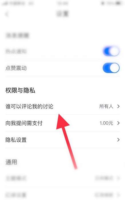 2、进入之后,点击“谁可以评论我的讨论”(如图所示)。