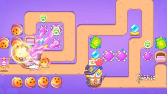 1、本关使用瓶子、保龄球和魔法球这些炮台。