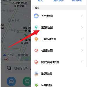 2、接着在右侧导航栏中,点击进入出游地图选项。