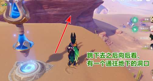 2、这个方向跳下后,向后看,有一个通往地下的洞口。