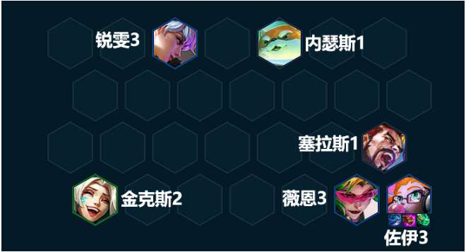 完成前两个目标就可以升8人口,在八人口我们可以把钱抽干,抽出2星赏金基本能保证吃分。最终组成锐雯、内瑟斯、芮尔、金克斯、薇恩、艾克、妮菈、赏金的8人口阵容。如果有幻灵转职可以用牛头替换掉内瑟斯。再开出2秘术卫士羁绊。