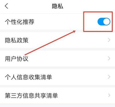 第四步:打开学习通的隐私,选择关闭个性化推荐,这样就操作成功了。