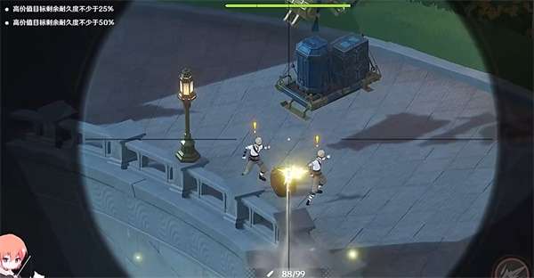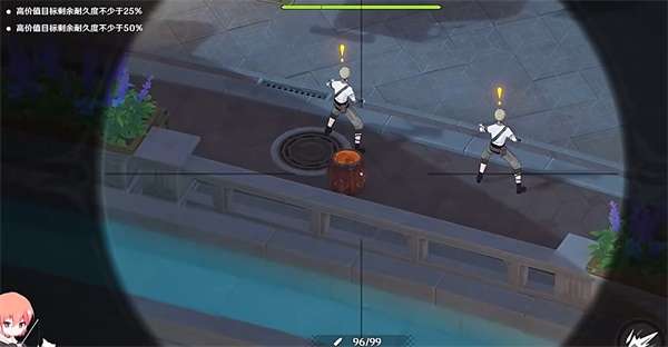 2、在两个敌人的旁边有一个炸药桶,需要将炸药桶进行打破。