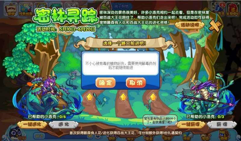 累计帮助3位小洛克走出密林可以领取:藤森食人花!累计6位则解锁:百战大王花 超进化资格!进化或者领取宠物不扣除相应数据。