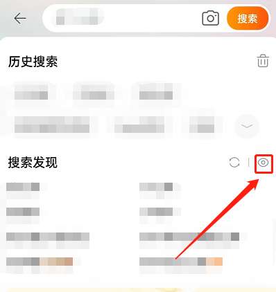 2、然后,找到搜索发现,点击右侧眼睛图标。
