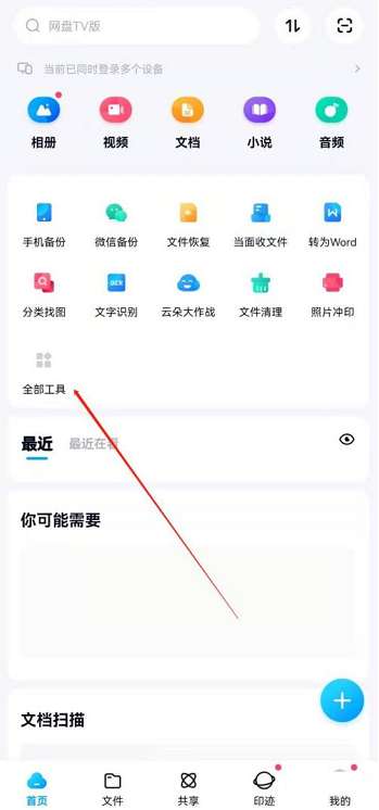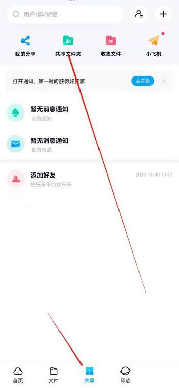 2、点击进入首页,然后点击进入共享(如图所示)。
