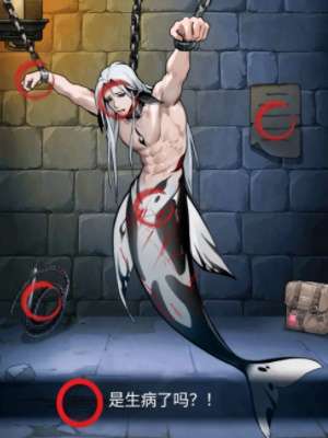1、玩家进入游戏首先找出奇怪的地方,分别是手腕上的铁链、苍白的脸、身上的伤痕、带血的皮鞭、地上的拖痕。
