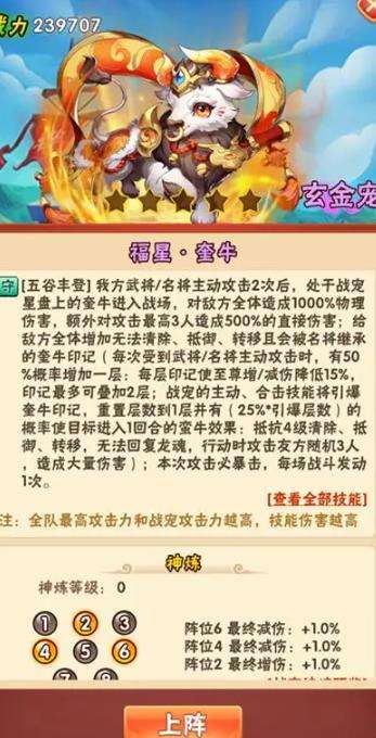 最后就是拥有土属性能力的黑麒麟,主要优势在于其坚不可摧的防御能力。它可以有效地增加己方单位的生存能力,还可以降低敌人的伤害,让武将可以战斗中坚持更长的时间,非常适合和敌人打消耗战。