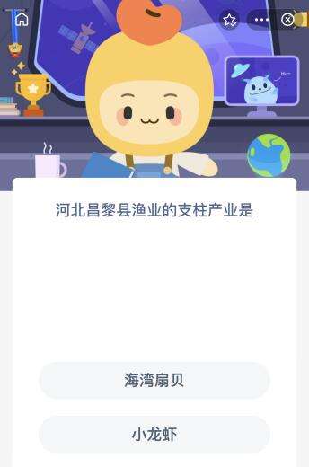 2022支付宝蚂蚁新村7月21日的题目为:河北昌黎县渔业的支柱产业是?海湾扇贝还是小龙虾呢?可能还有很多小伙伴都不太清楚。下面小编就为大家带来了正确答案分享,还不知道这道题目正确答案的小伙伴们快一起来看看吧!
