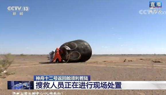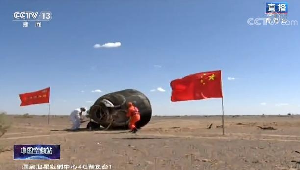 9月17日13时30分许,神舟十二号载人飞船返回舱反推发动机成功点火后,神十二安全降落在东风着陆场预定区域。这是神舟飞船首次在东风着陆场着陆。期待航天员出舱!(人民日报)