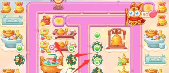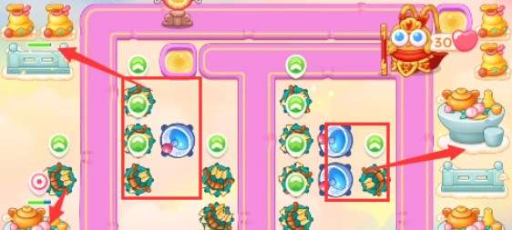 3、开完的格子继续放置多重箭,将中间的道具全部打开。