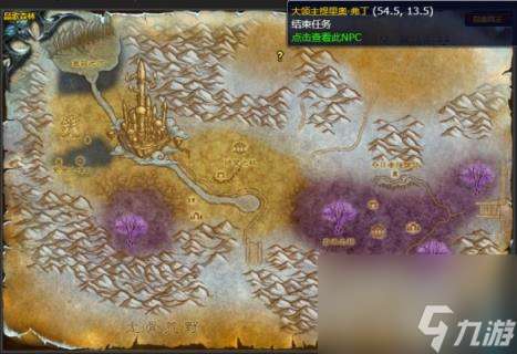 3、然后我们前往晶歌森林坐标(54.5,13.5)处找到大领主提里奥·弗丁完成任务。