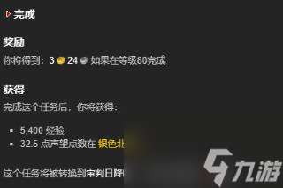 4、完成任务后可以获得5400经验、3金24银、32.5 点声望点数在 银色北伐军。