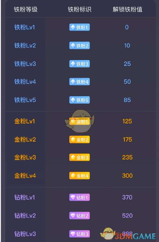 2、在此界面,你就能看到自己的铁粉值及钻粉级别。