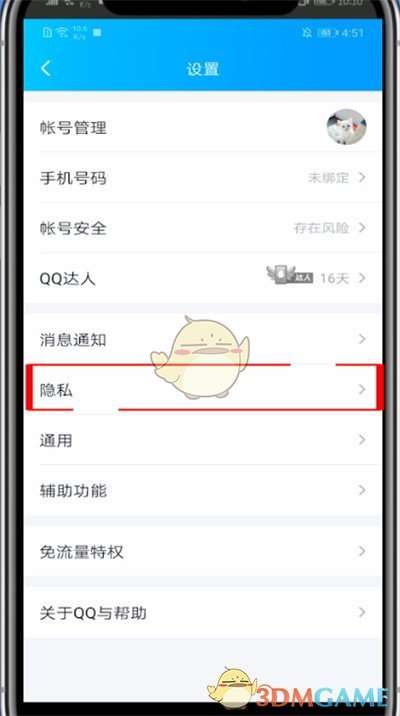 3、点击隐私设置