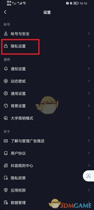 3、在设置界面,点击隐私设置。