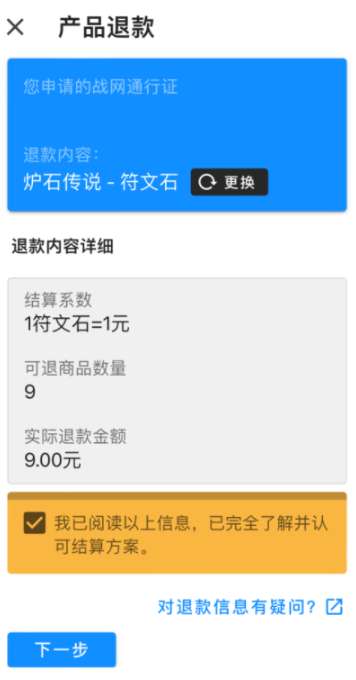 6、最后会让我们进行确认,完成确认后点击下一步之后等待官方统一退款就行。