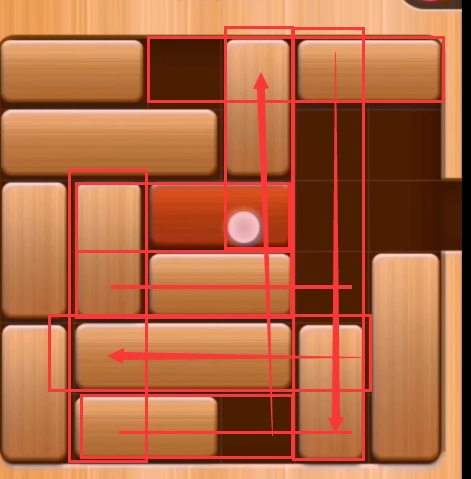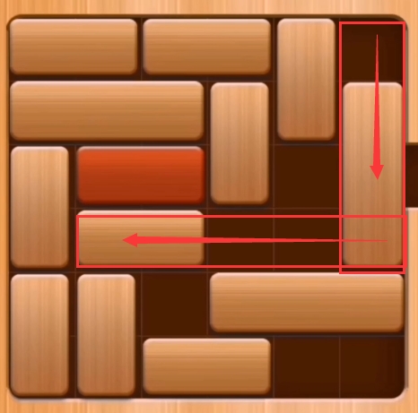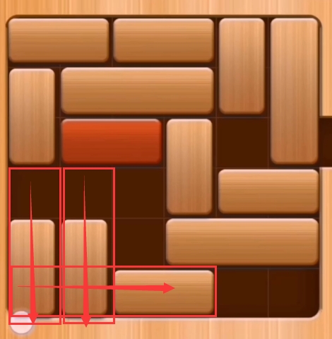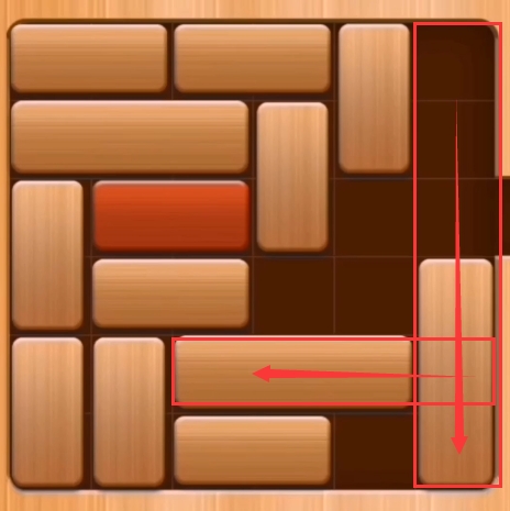 第五步:第五列的积木往下推、第四列的积木往上推、第二列的往上推、第五排、第六排的往左边移、第四排往右移: