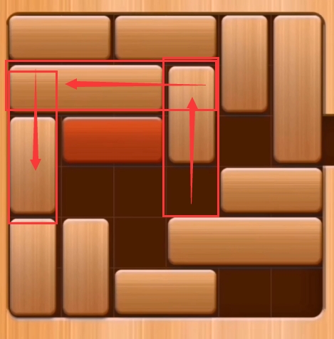 第二步:第一列的积木往下推、第二排的往左边移、第四列的积木往上推: