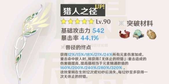 原神即将更新全新3.0版本,猎人之径是3.0版本中新增的武器,很多玩家都想知道这个新武器的突破材料是什么?下面十大评测小编给大家带来了原神3.0猎人之径突破材料介绍,感兴趣的一起来看看吧。