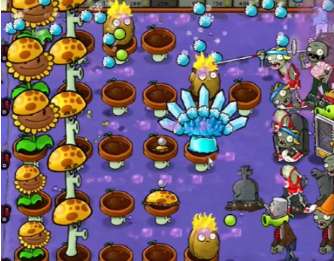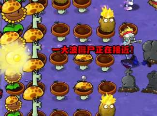 3、然后在血量很厚的僵尸出现的一行摆放火炬坚果和雪花寒冰菇。