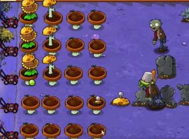 2、首先需要放置阳光向日葵、小盆菇和土豆雷,积攒阳光后放置阳光胆小菇。