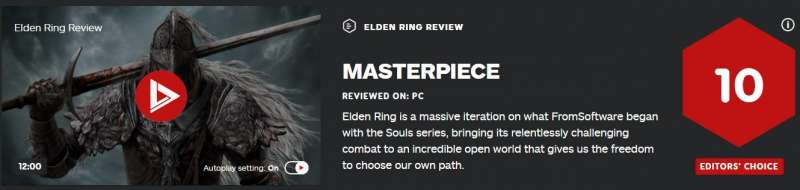 近日,《艾尔登法环》媒体评分解禁,IGN打出高达10分的好评,表示该作是迄今为止规模最大、极具野心的游戏,是一款能推动该类型游戏向前发展的作品。