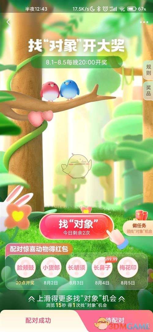 特别提醒:活动期间,会有一天的惊喜动物是“象”。如果你恰巧在那一天成功凑成“对象”,你将获得99.99元支付红包!