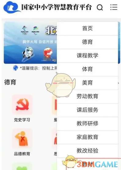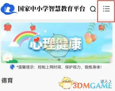 1、打开智慧中小学app后,点击右上角的“三横”