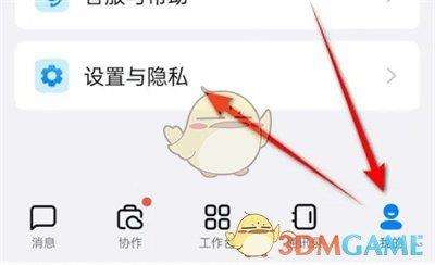 1、打开手机中的钉钉软件登录进入后,在页面的右下方点击“我的”切换进入,再在我的页面里点击选择“设置与隐私”这一项打开。