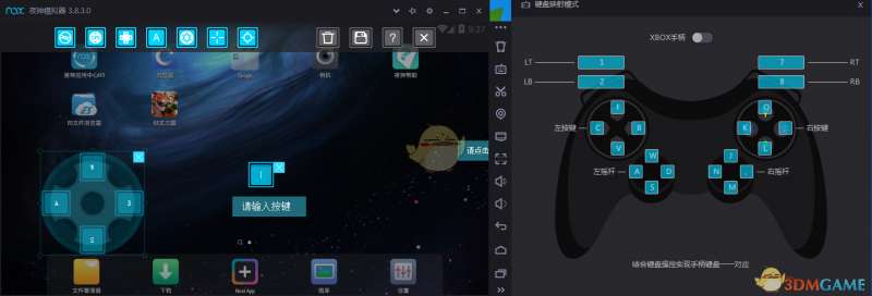 5、接着再在功能列表中打开“键盘操控”,之后根据游戏的按键在键盘上设置好按键,这些按键要跟手柄中给出的按键相对应就可以了。