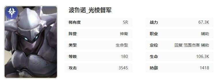 波鲁诺对场上生命百分比最低的友方单位发出棱光,为其治疗波鲁诺最大生命值5%的生命值。