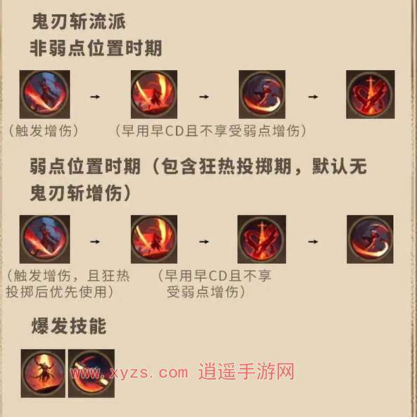 3、鬼刃斩流派可以利用上一次使用技能所处的轮盘位置暂时变成弱点位置,可以在轮盘上设置多个弱点位置,需要规划好冷却时间,连续触发弱点打出伤害。
