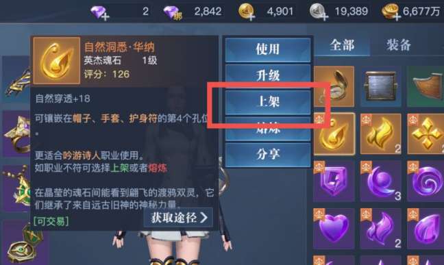 同时,我们也可以直接在背包中选择自己想要出售的物品,点击“上架”或是“出售”来进行交易。