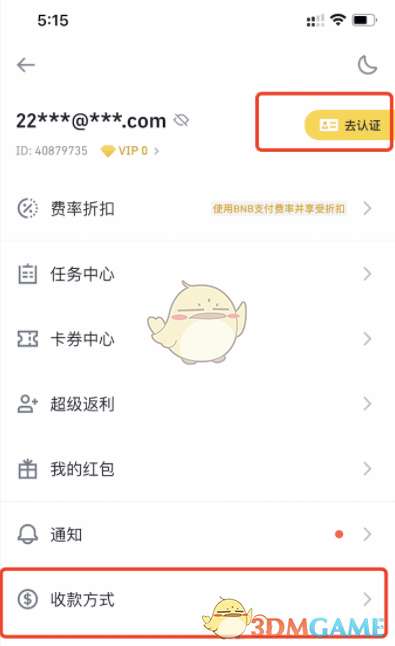3、登陆后,请点击左上角人头像,按要求完成身份跟认证和点击收款方式设置,添加收款方式和绑定手机号。