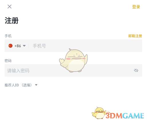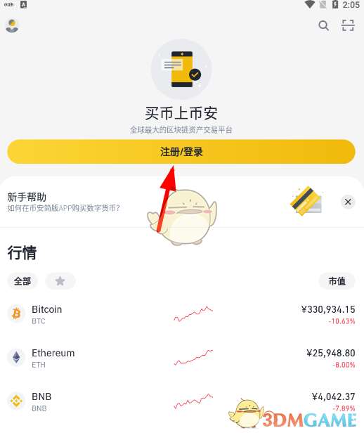 1、打开币安app,如您已有账号,点击“登录”,如没有账号,点击左上角“注册”。