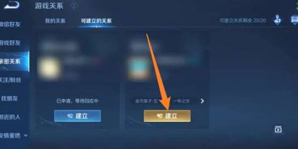 注意:需要亲密度达到100以上,或者是成为开黑搭档才能建立关系。