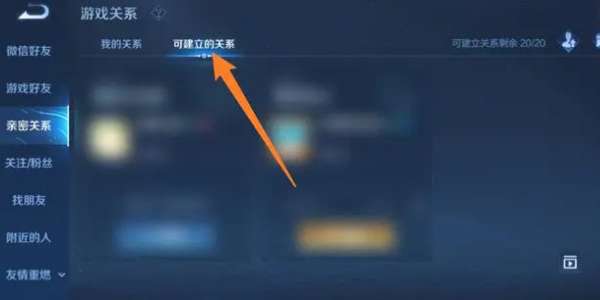 3、进入亲密关系界面后,点击右侧的“可建立的关系”选项。