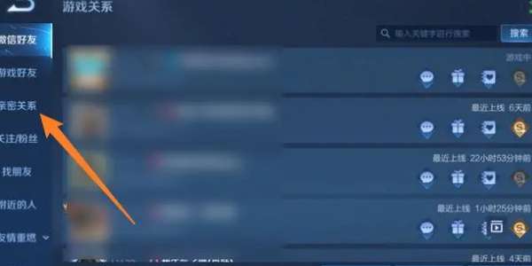 2、进入游戏关系功能后,点击选择左侧的“亲密关系”选项。