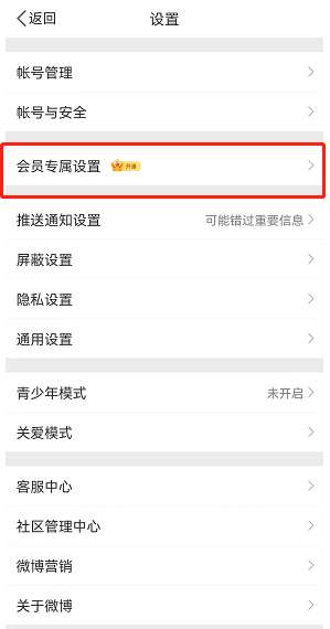 2、接着,进入设置后选择会员专属设置。