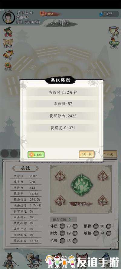 2、开局属性只是影响技能点的多少,每当角色升一小级就会新增5个技能点。所以不必太苛刻要求属性太高,一般基本处于20以上就可。五个属性优先点机缘其次敏捷和根骨,开局主要刷的是宠物,先填加群有礼包兑换码,进游戏有送的15w灵石最好留5w灵石备用,抽吞金兽击败一次怪物额外获得3灵石和吞金神兽击败一次获得6灵石。