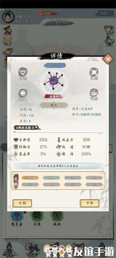 3、如果没抽到建议重开继续抽到为止,最好能生育的,第一时间进入洞府进行宠物生育,随后先升灵海升到不能升了再升修为,先把灵海升到10级,升灵海是为了增加每五秒修为值。