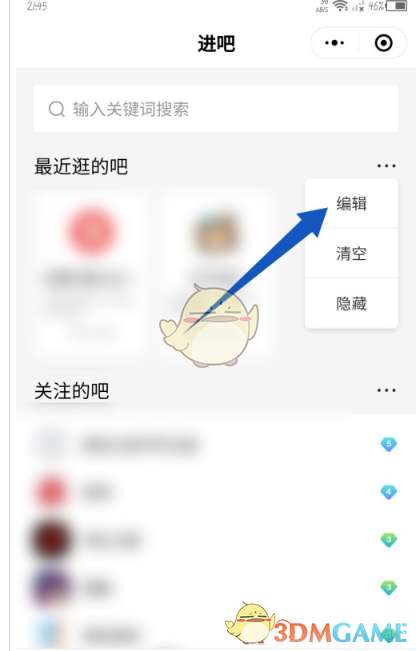 2、在打开的页面,点击最近逛的吧后面的三点。
