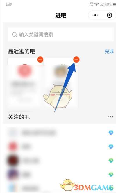4、然后选择要删除的最近逛的吧,点击右上角的删除图标。