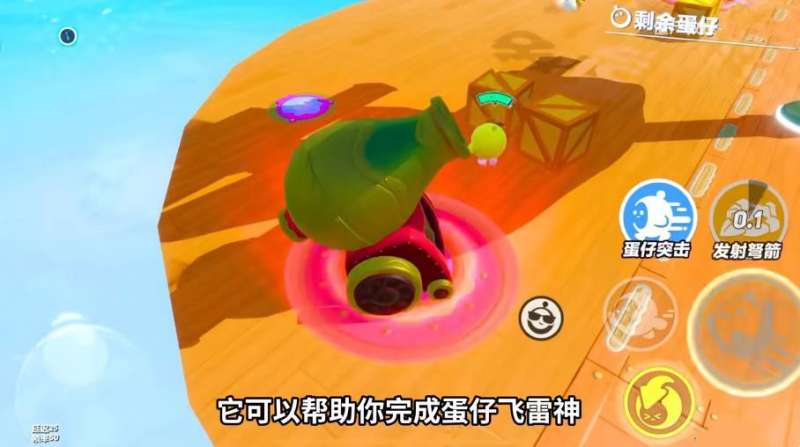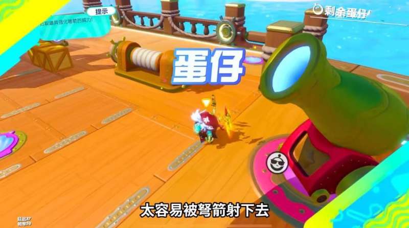 3、边上这几门红色发光的大炮,可以帮助我们完成蛋仔飞雷神,注意进入大炮千万不要跳扑,跳扑之后会出现明显的僵直。