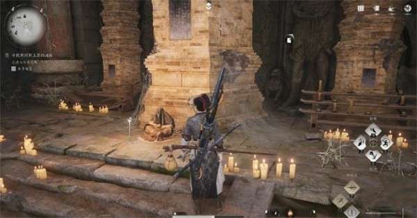 4、在石柱下能够找到一个老和尚,上前进行调查战斗。