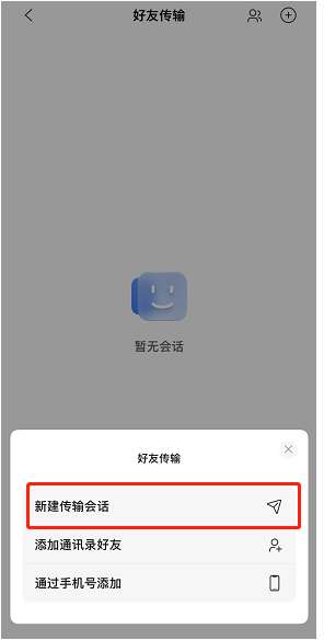 3、最后,在这点击新建传输会话就能给好友一对一传输了。