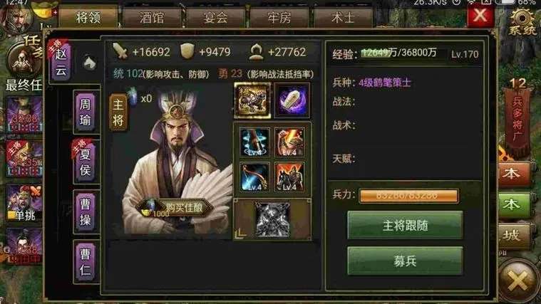 将领搭配:使用能够增强虎骑兵种的将领,并提升其等级和技能,最大化充分发挥虎骑爆的威力。