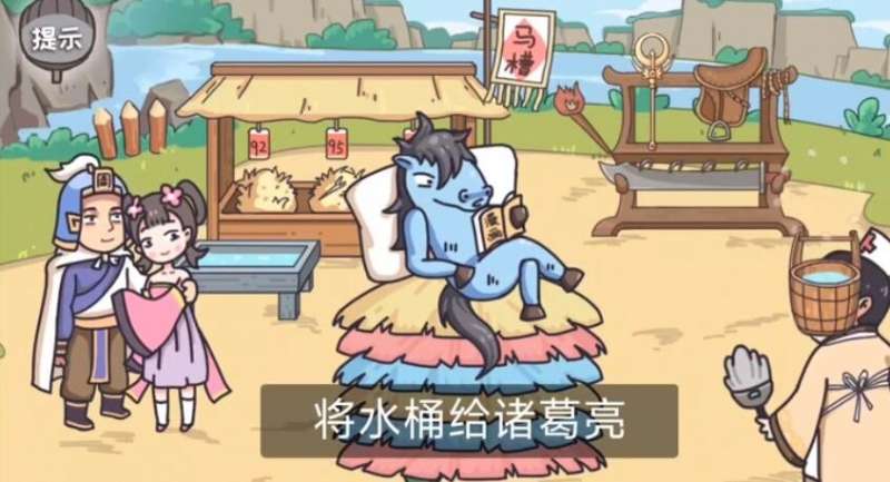 3、将右方的水桶移动到诸葛亮身上,可让诸葛亮为萌萌洗澡,之后本关即可通关。