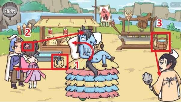 1、逆时针转动图中标示的萌萌的马腿数次,掉落出蹄铁后,将其交给周瑜,可让周瑜为萌萌做美甲